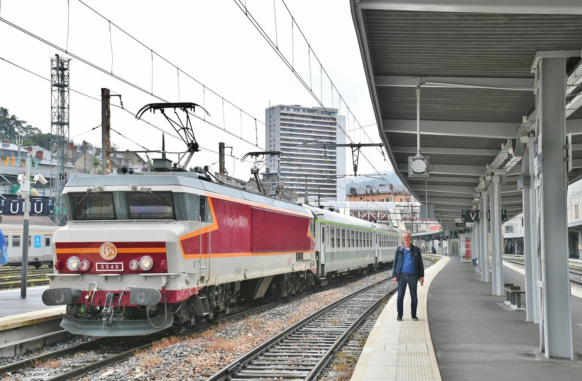 La CC 6549 et ses voitures UIC le 5-6-2025 à la sortie de Montmélian.