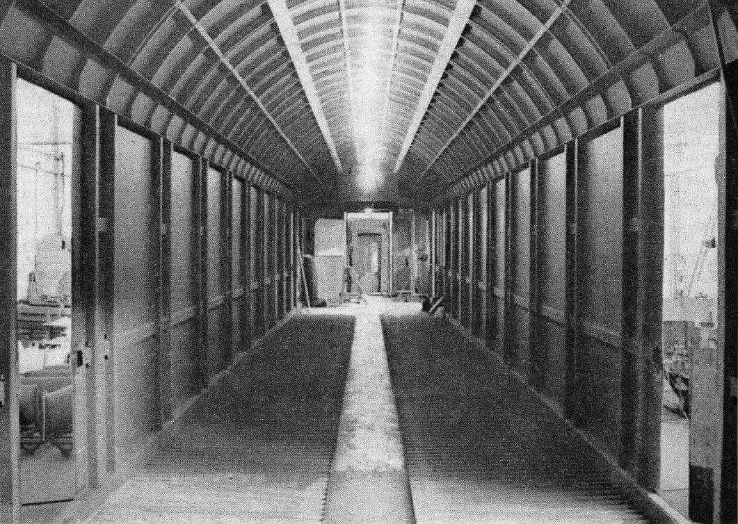 Intérieur de la caisse de la voiture Su 204 avant équipement.