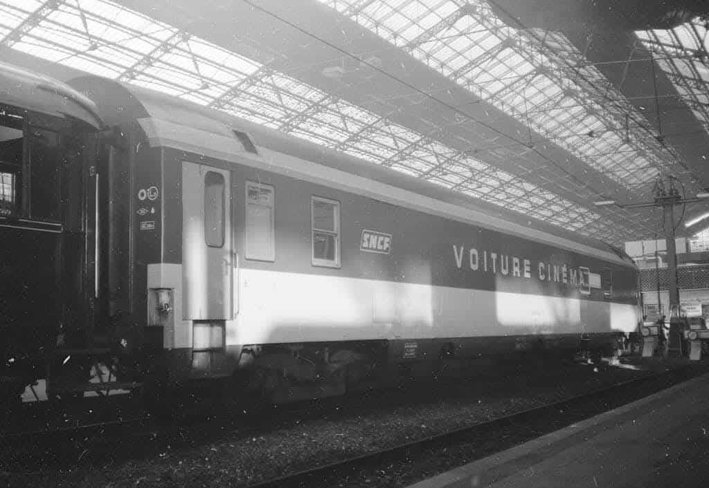 C’est en utilisant une caisse de voiture-lit MU longue (26,400 m H.T.), construite par les Etablissements Brissonneau et Lotz à Aytré, et les plans préparés en collaboration par la Section Centrale Cinématographique et la Division des Etudes de Voitures (DEV) que les Ateliers du Mans de la Région Ouest ont réalisé avec un soin particulier l’équipement et les aménagements de ce « cinéma sur rails ». La salle de projection climatisée peut recevoir 75 spectateurs. On peut y accéder en marche par les portes d’intercirculation, et à l’arrêt à partir de la voie ou d’un quai, au moyen d’un escalier amovible et réglable, en alliage léger.